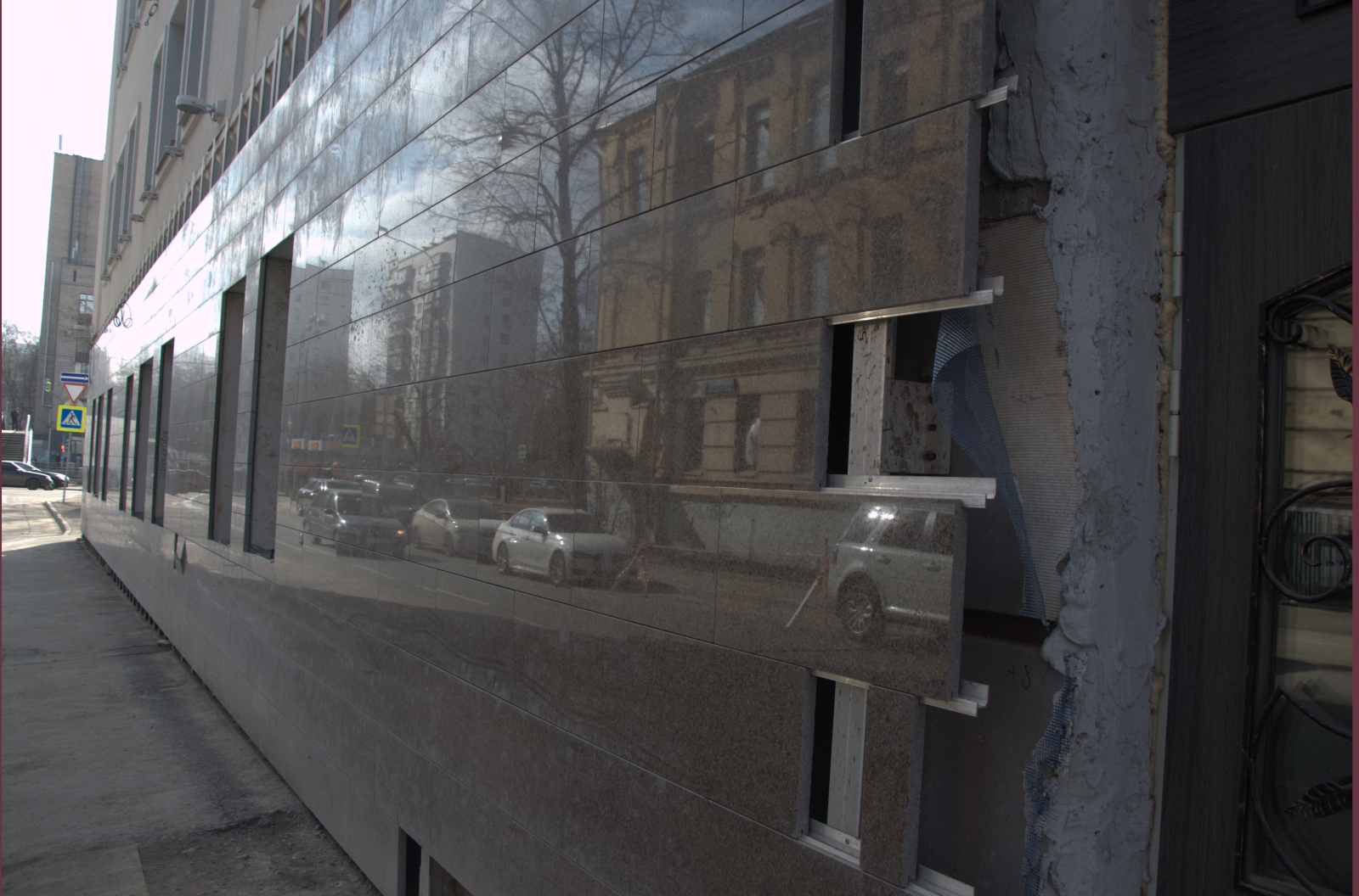 При облицовке фасада гранитом крепление может выполняться как на видимые элементы фиксации, так и методами со швом либо без него. Технология монтажа гранита в этом случае зависит от вида используемого камня, его массы и дизайнерского решения.