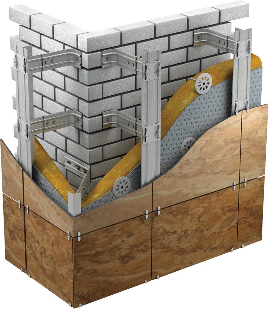 Если говорить о технологии монтажа вентилируемого фасада, то в такой ситуации этапы выполнения работ заключаются в следующем:
