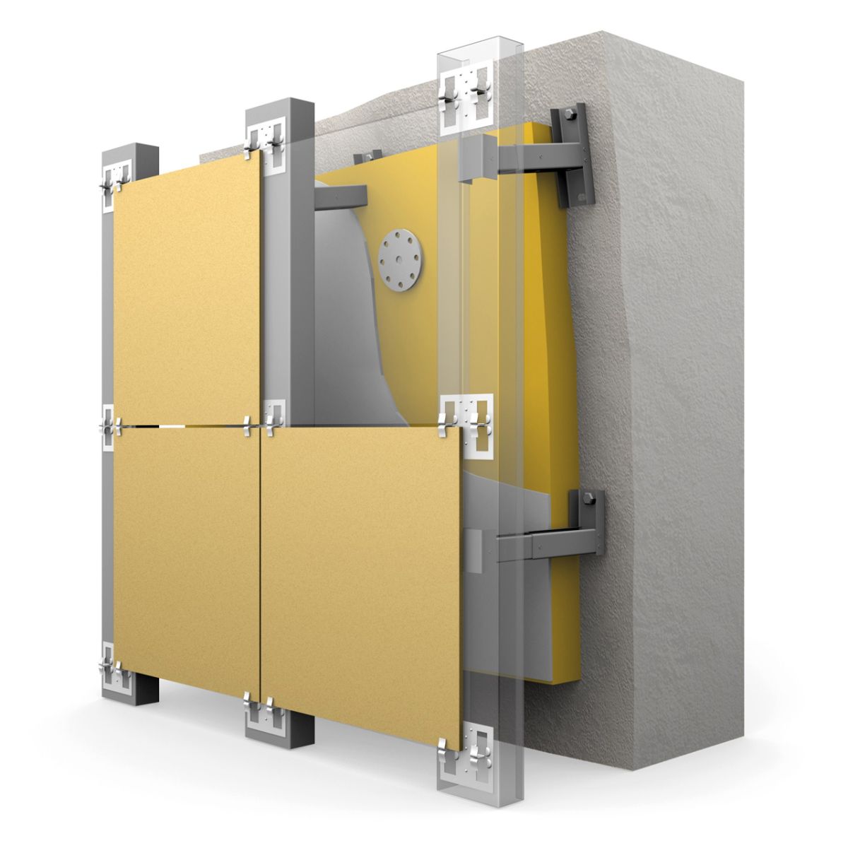 Профессиональный монтаж навесных фасадов под ключ предусматривает использование облегченных профилей из алюминия со сложной конструкцией. Вся система надежно фиксируется с созданием звукоизолирующего участка.