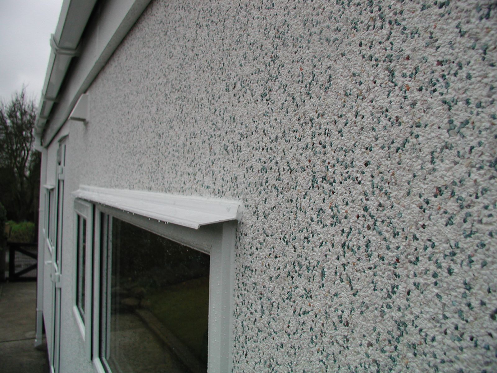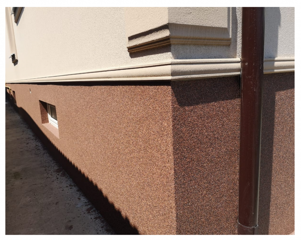 У списку фасадних матеріалів є штукатурка з мармуровою крихтою. Вона містить суміш натуральної кам'яної крихти різної фракції, для з'єднання якої використовується прозора або тонована речовина на основі акрилу, силікатів, силікону. Розмір фракції елементів зумовлює особливості фактурного покриття поверхні.