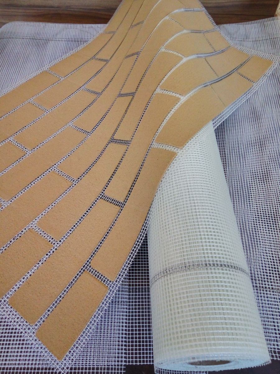 - Декоративна кладка із гнучкої цегли. Матеріал встановлюється втисканням поворотними рухами. Більш щільне прилягання забезпечується за допомогою постукування гумовим молоточком.