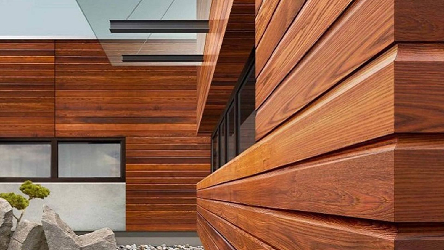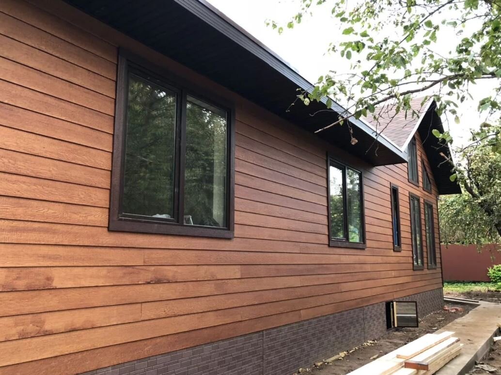 Варіантів обшивки фасадів термодошкою дуже багато. Нерідко дизайнери планують повне покриття поверхні виробами. Але також добре виглядатиме і комбінований стиль у поєднанні з цеглою, каменем, бетоном, склом.