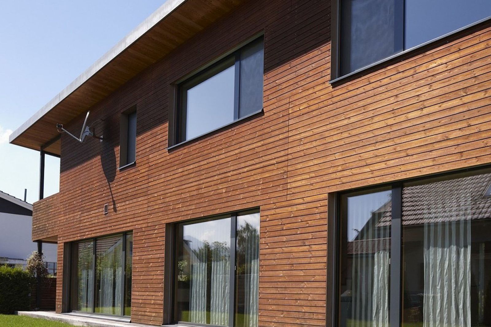 Монтаж облицювання фасаду передбачає застосування спеціальних кліпсів, виконаних з нержавіючої сталі. Також важливо на завершальному етапі обробити поверхню матеріалу спеціалізованими оліями захисної дії. Таким зовнішнє облицювання деревом залишатиметься у первозданному вигляді протягом усього терміну експлуатації.